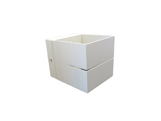 • Mustan ja valkoisen valaisimen mitat 80 x 80 x 100 mm